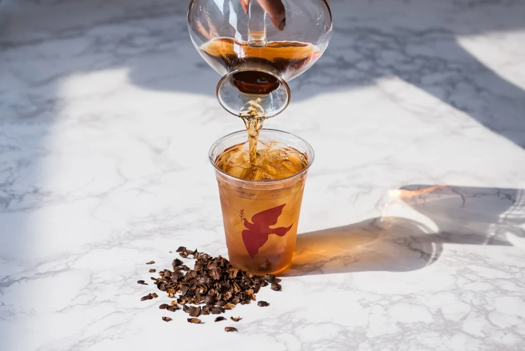 After brewing, cascara can be drunk on it own as a hot or iced tea. Some people like to add honey or sugar, even though the tea is already somewhat sweet. You can also spice it to create the traditional hashara and qisher drinks.