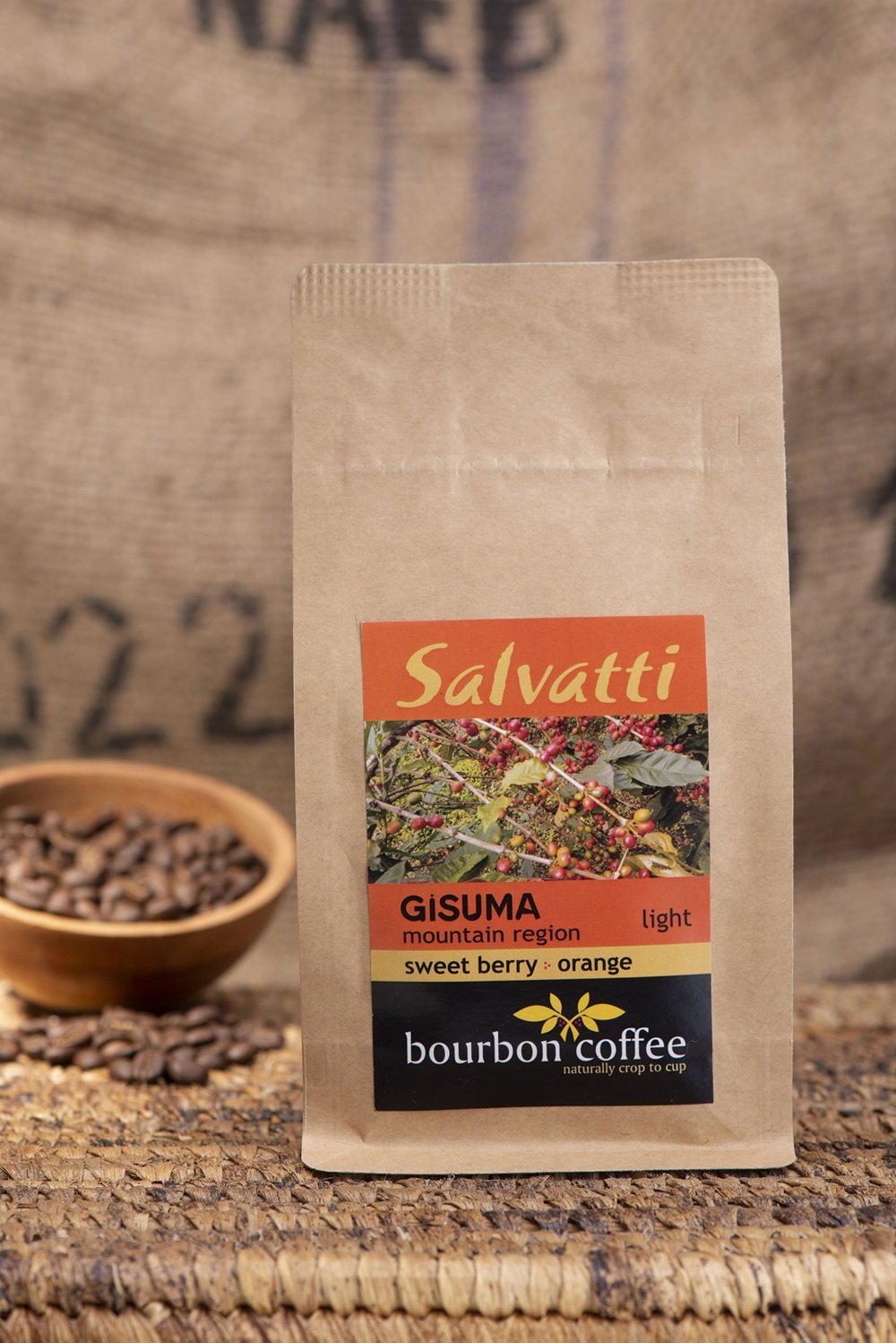 Arabica coffee, light roasted, high-quality “Speciality” type from Rwanda with natural aromas coming from the soil where the coffee grows.
