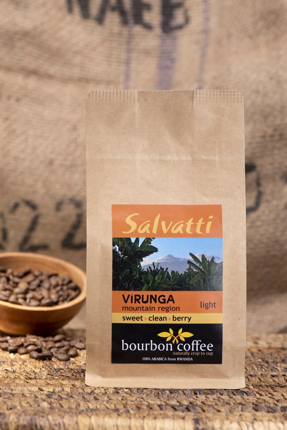 Arabica coffee, light roasted, high-quality “Speciality” type from Rwanda with natural aromas coming from the soil where the coffee grows.